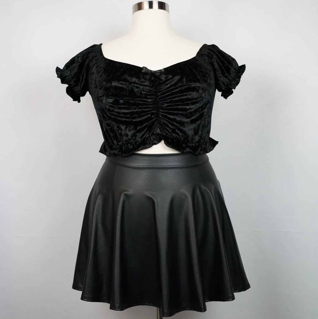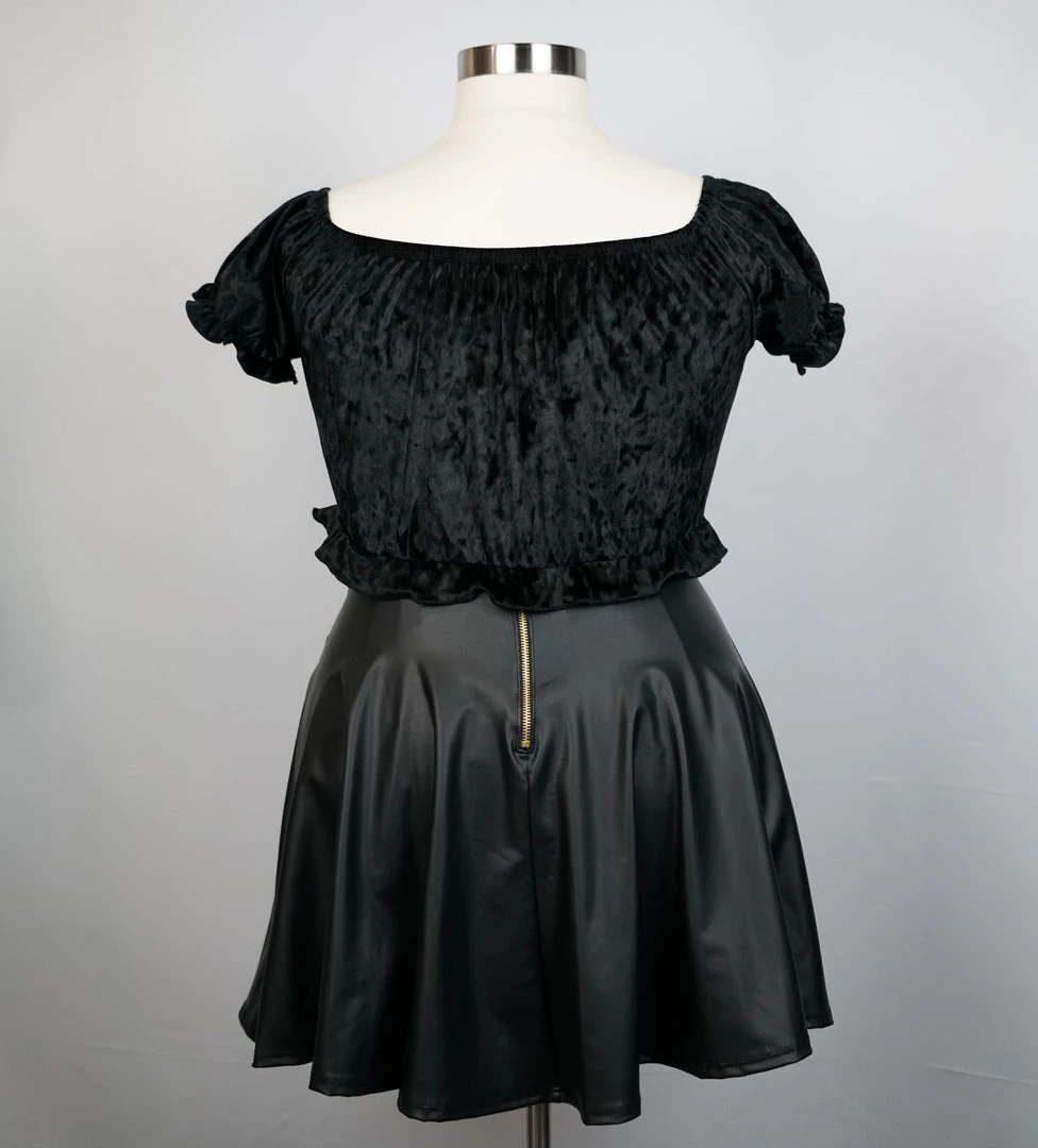 This stretchy faux leather skirt pairs with so many tops! Style it with something lacy when you’re feeling fancy or your favorite fitted tee for an effortlessly cool look. Zips up the back. Made from a very stretchy material!