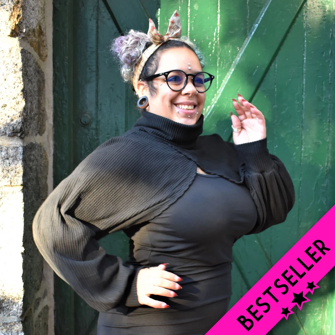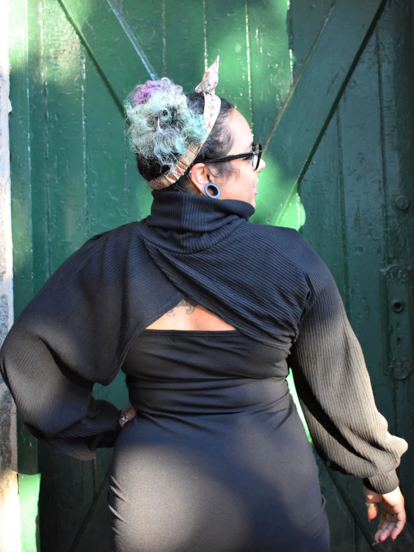 This sweater has been hewn in twain! The crossover feature of this top makes it the perfect addition to any outfit. With cuffed long sleeves and a turtleneck, it is sure to provide just the right amount of warmth.