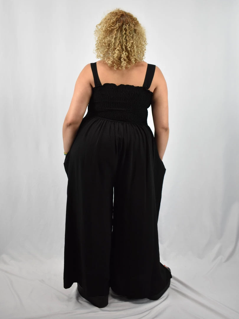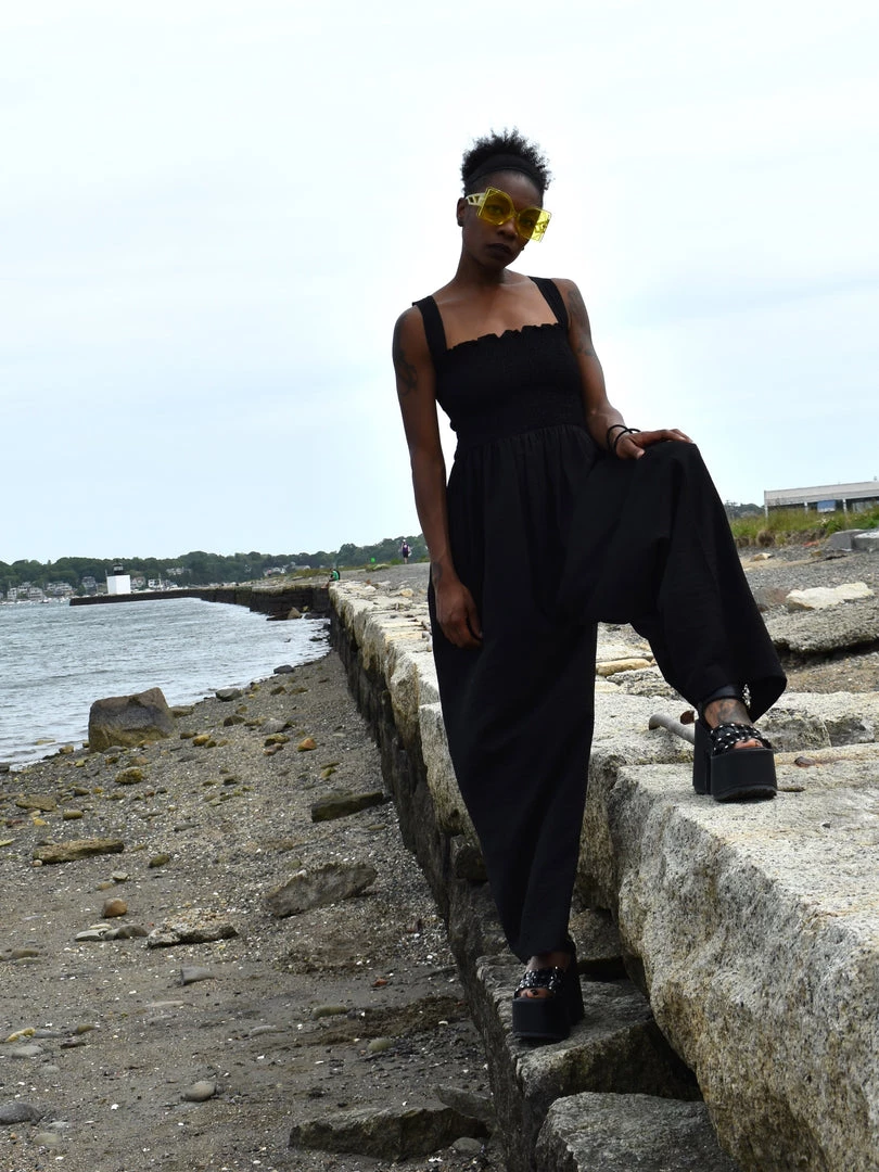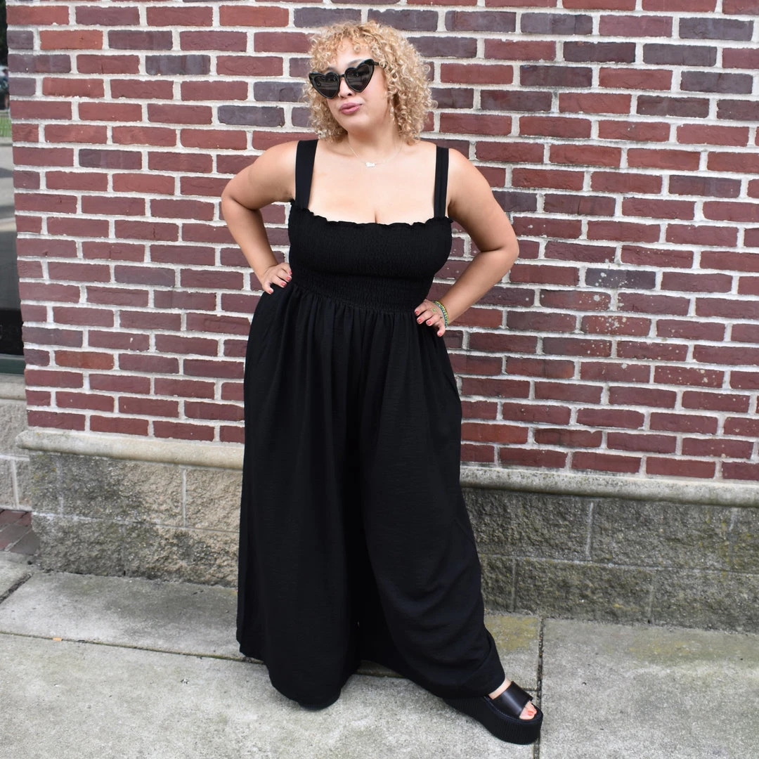 This classic black jumpsuit from Foxblood was made for adventuring! The wide legs keep you covered while exploring the woods but breezy while walking along the beach. With a fully smocked top and button-adjustable straps you’re sure to find the perfect fit.
