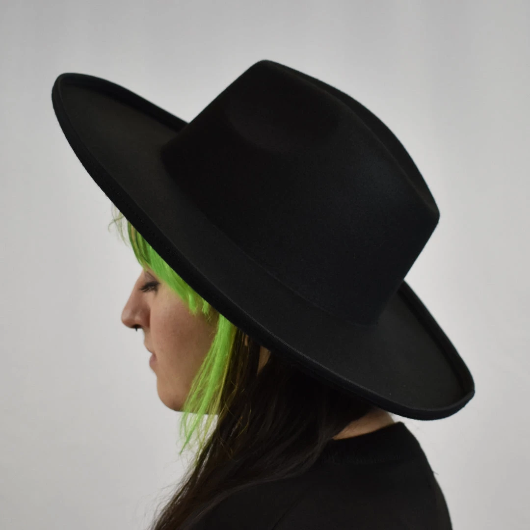 SKU: hats-hair-accessories-6727697137734 Categories: ACCESSORIES, HATS & HAIR ACCESSORIES Tags: Black hat, Fall hat, Goth hat, Gothic hat, Vegan felt hat, Vegan hat, Wide brim hat, Winter hat