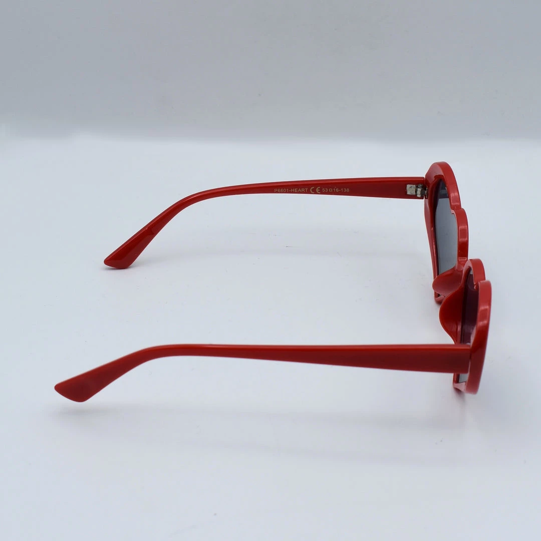 These heart-shaped sunnies have an unexpected twist with a fun, elongated cat eye shape. UV400 protection and polycarbonate lens.