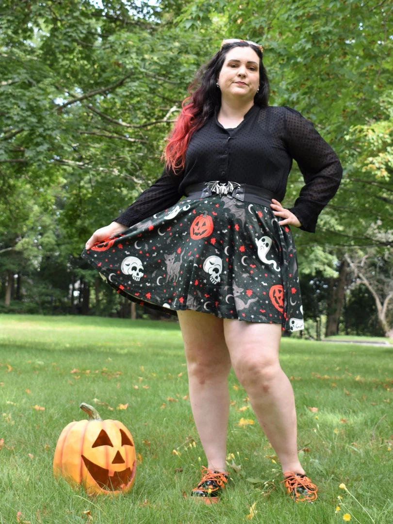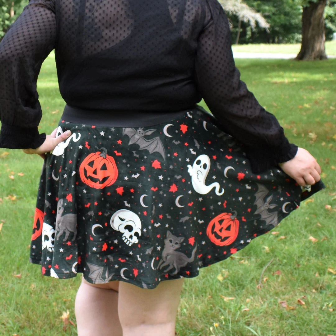 One of our absolute favorite Bats in the Belfry Crafts prints is now available in our favorite skirts! This ultra-cozy velvety velour piece is so soft, you’ll want to wear it every day, every night, and you’ll love it so much, you’ll even want to sleep in it! A flattering cut in a super stretchy fabric. Print design made by our friend Tiffany Leobell of Bats in the Belfry Crafts, it is an exclusive collaboration with Die With Your Boots On!