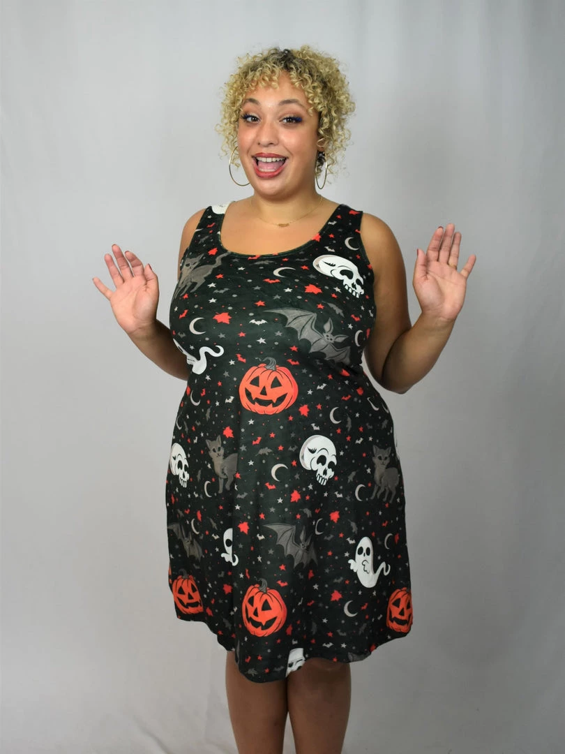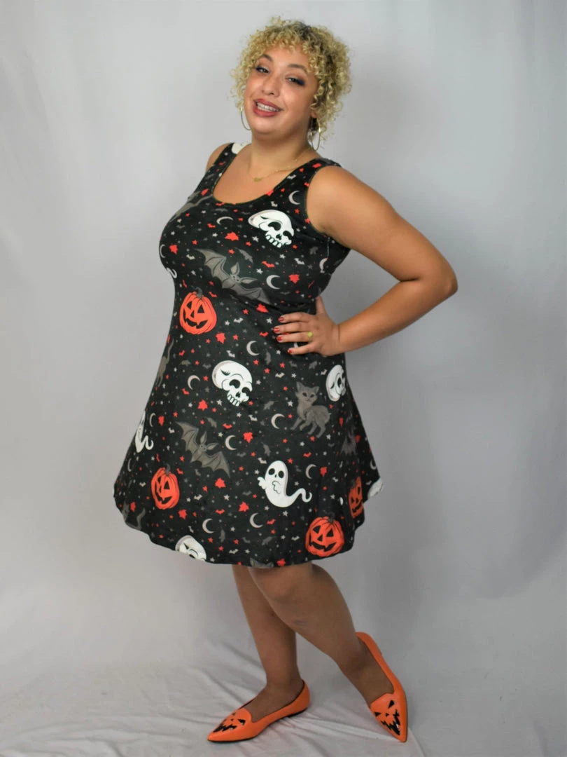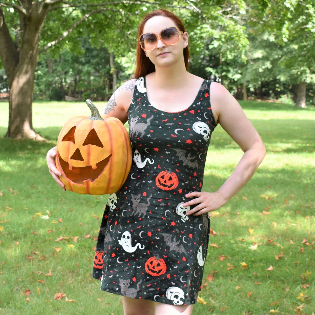 One of our absolute favorite Bats in the Belfry Crafts prints is now available in our favorite autumn dress! This ultra-cozy velvety velour dress is so soft, you’ll want to wear it every day, every night, and you’ll love it so much, you’ll even want to sleep in it! A flattering fit and flare cut in a super stretchy fabric. Print design made by our friend Tiffany Leobell of Bats in the Belfry Crafts, it is an exclusive collaboration with Die With Your Boots On! Check out the skater skirt version, as well!
