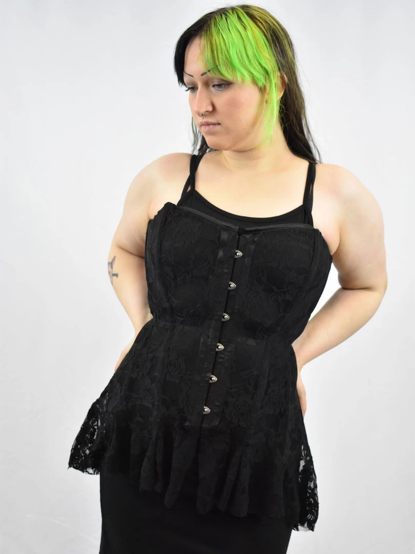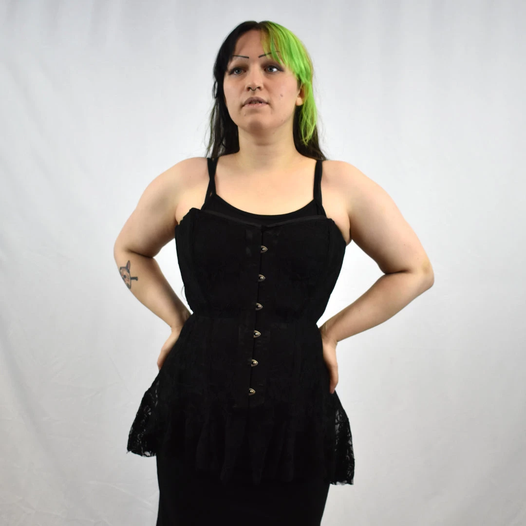 Corset dress made of high quality lace. Fully sheer and strapless: shown here layered over a cami dress.