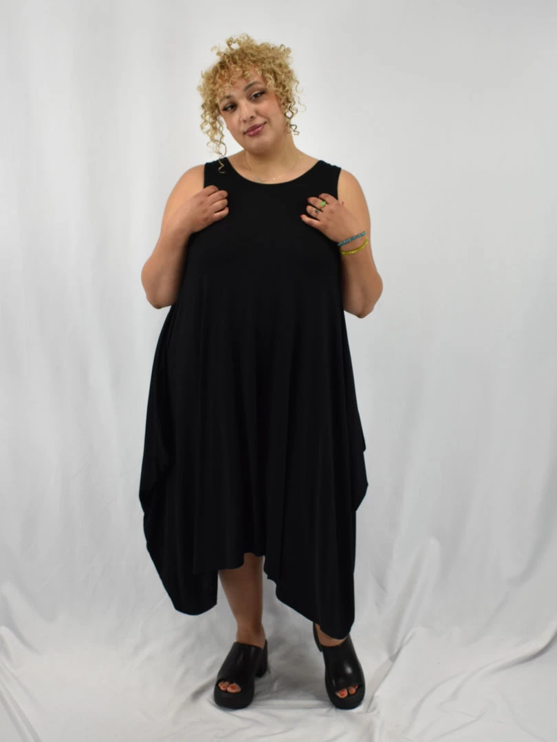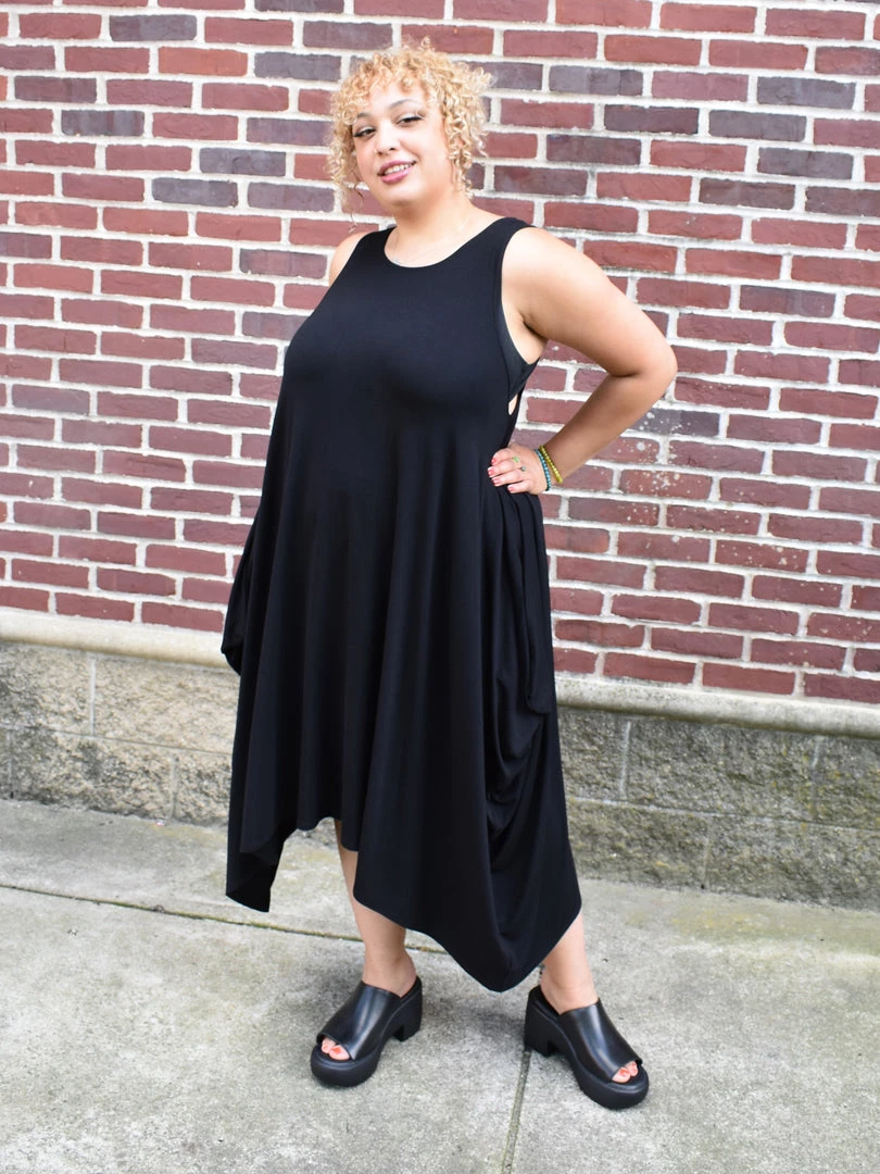 Sweep through summer this ultra comfortable and versatile dress. You will LOVE this one for its dramatic drape and POCKETS! Made out of FOXBLOOD’s Signature super-soft cotton modal. Two freely sized versions available.