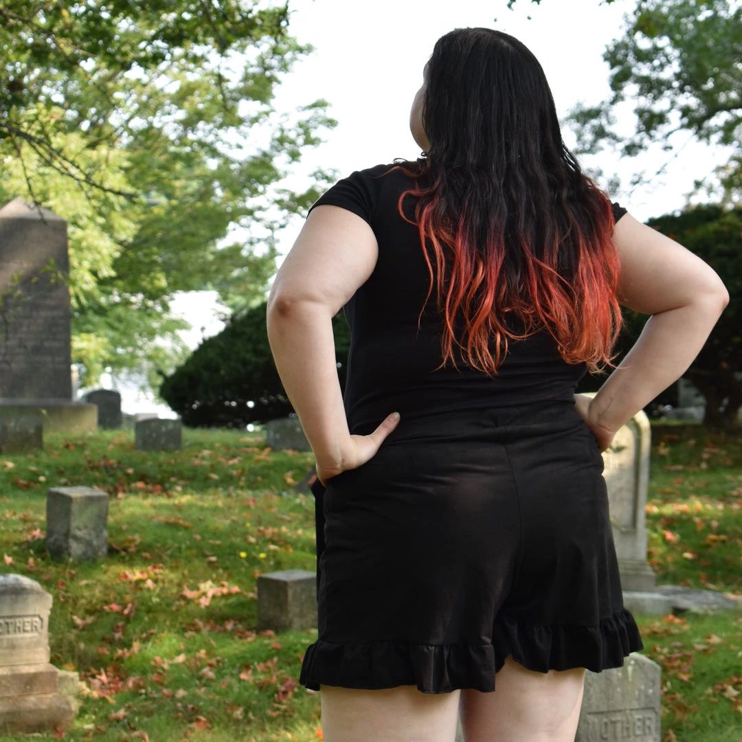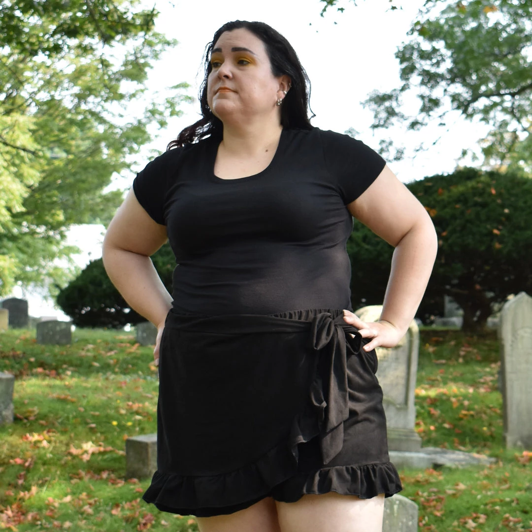 Bet you thought the skort was out with the 90’s, Ugh… AS IF! We’re here to proclaim our love with this adorable frilled faux suede skort, made from a comfy stretchy material that looks like a skirt in front or shorts from the back! A perfect finish to an outfit that won’t leave them thinking you’re clueless.Â