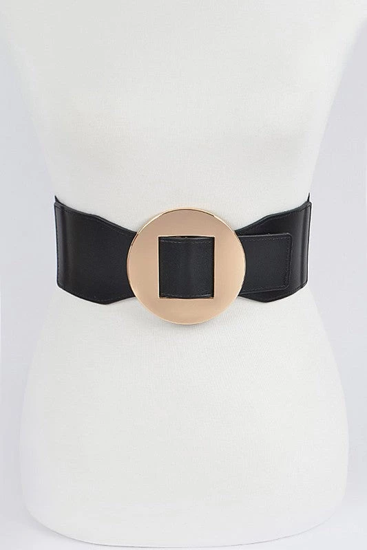 It’s a sure bet: this belt is a winner! Features a minimalist gold-tone round slide buckle with vegan leather front detail and an elastic back for an easy fit.Â