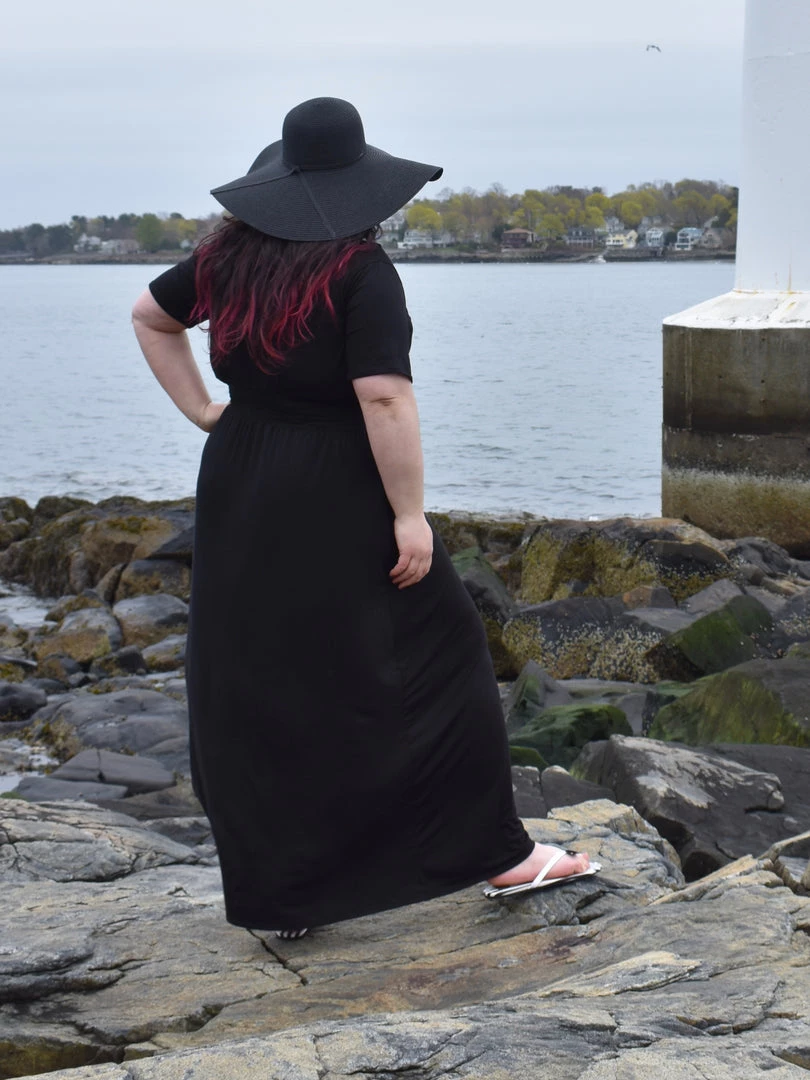 All dressed up and ready to take it easy. Made of a super soft and stretchy knit, this faux wrap maxi features a deep v-neck, smocked elastic waist, and side slit pockets, and is perfect for a lazy summer day.