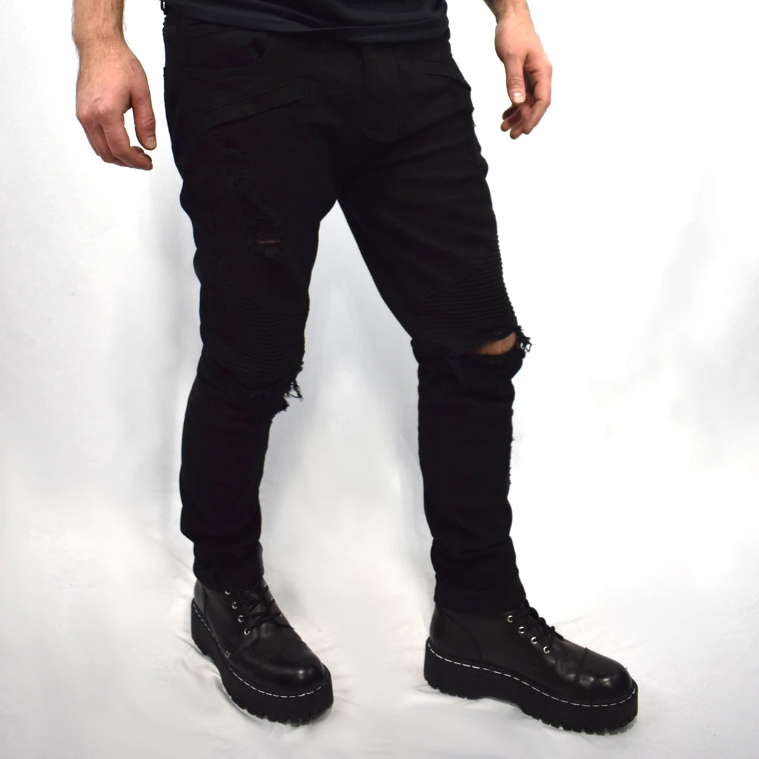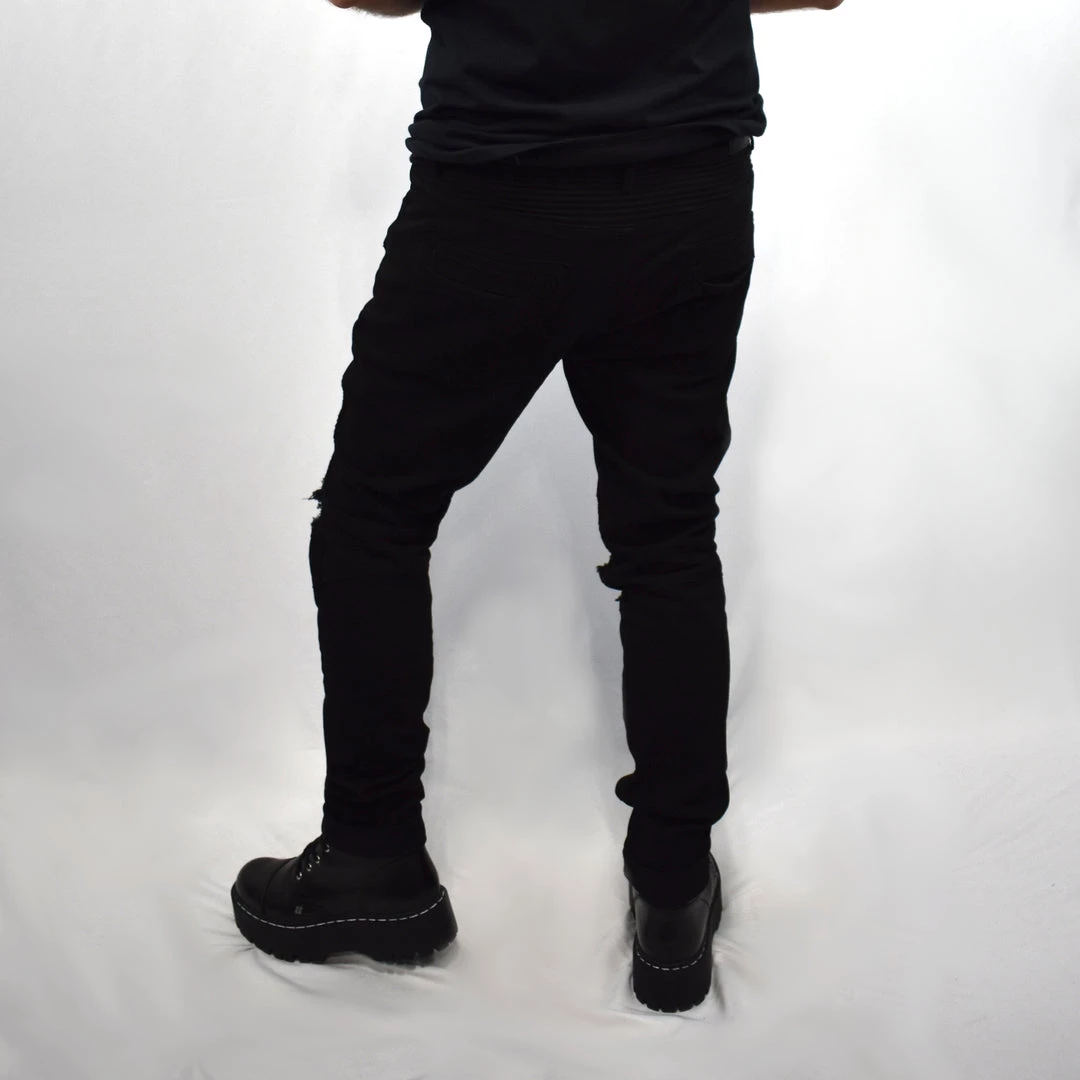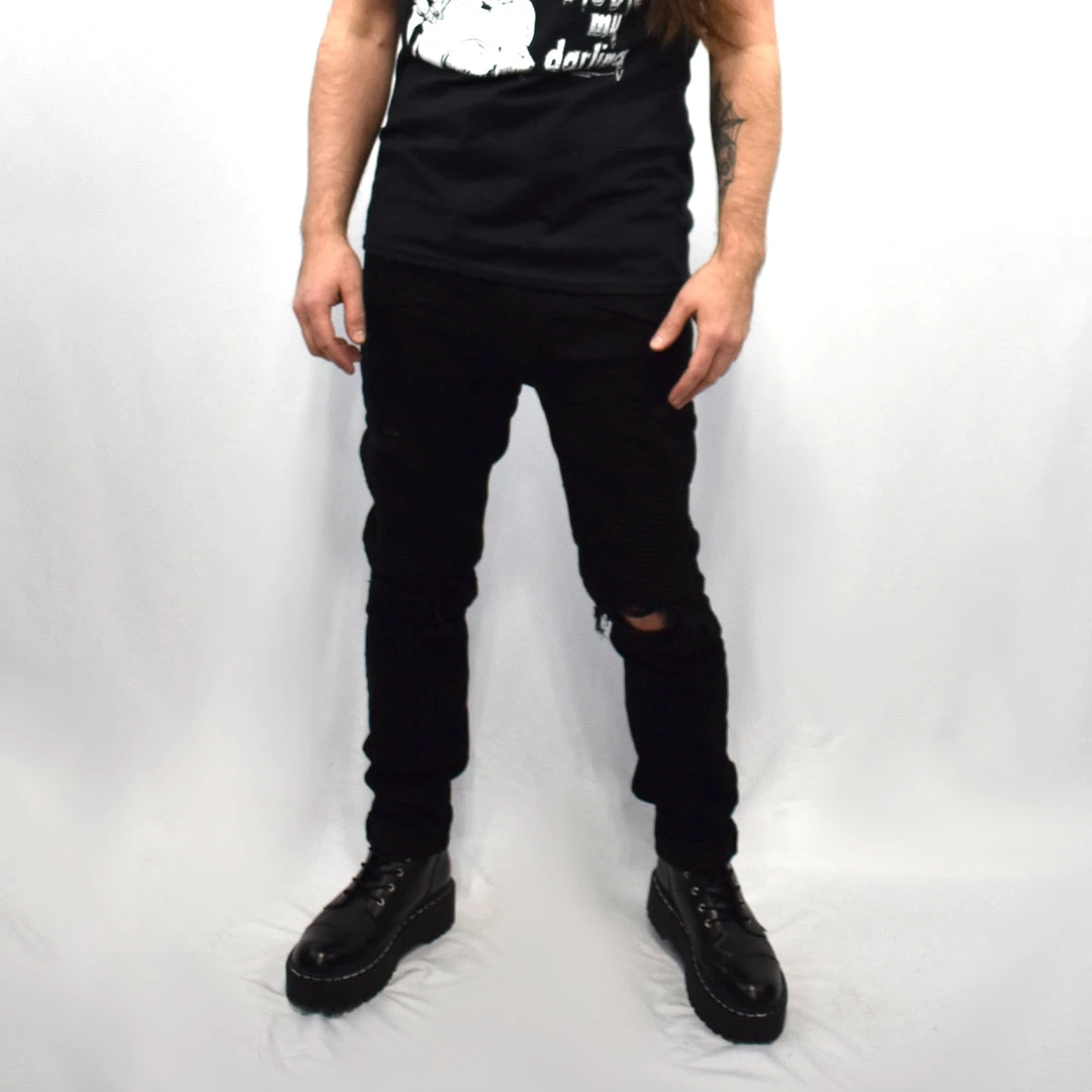Create a classic rock n’ roll look with these distressed skinny moto jeans made from very comfortable stretch denim. A popular pair of jeans among our staff and customers!