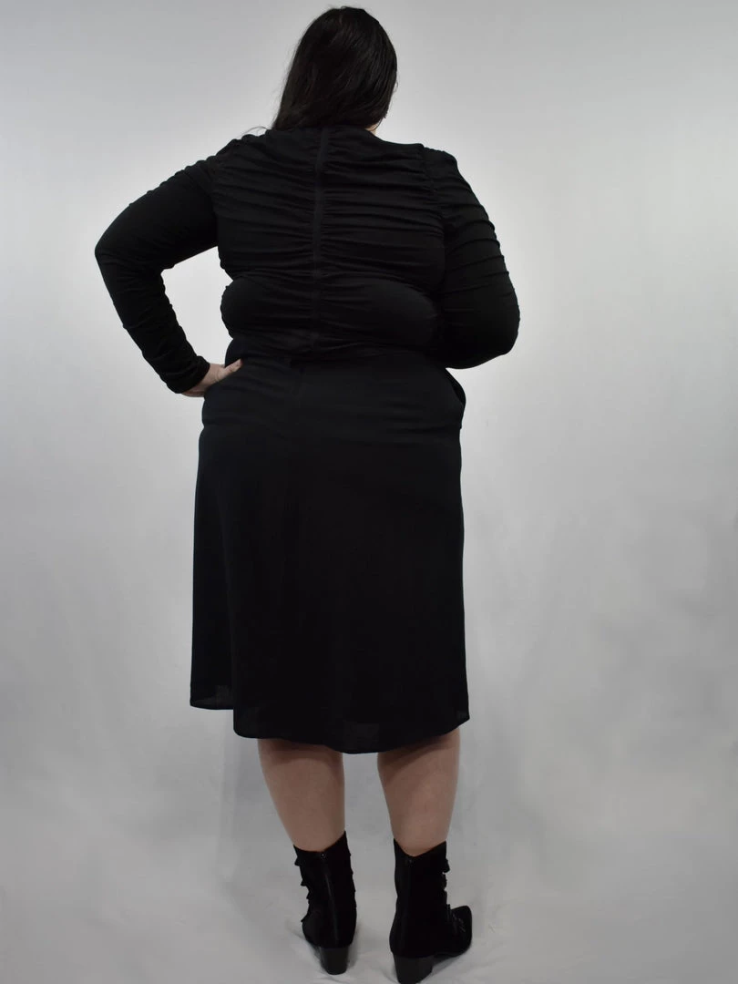 Showcase your curves with the Pucker Up Top. This long sleeve top has allover ruching and vertical tape detailing in the front, back, side and arms. The keyhole neckline adds a femme and flirty touch. The ruching texture makes it easy to wear and easy to style with your favorite pants or skirt. Form fitting, but stretchy. Definitely a perfect day to night top to add to your closet.