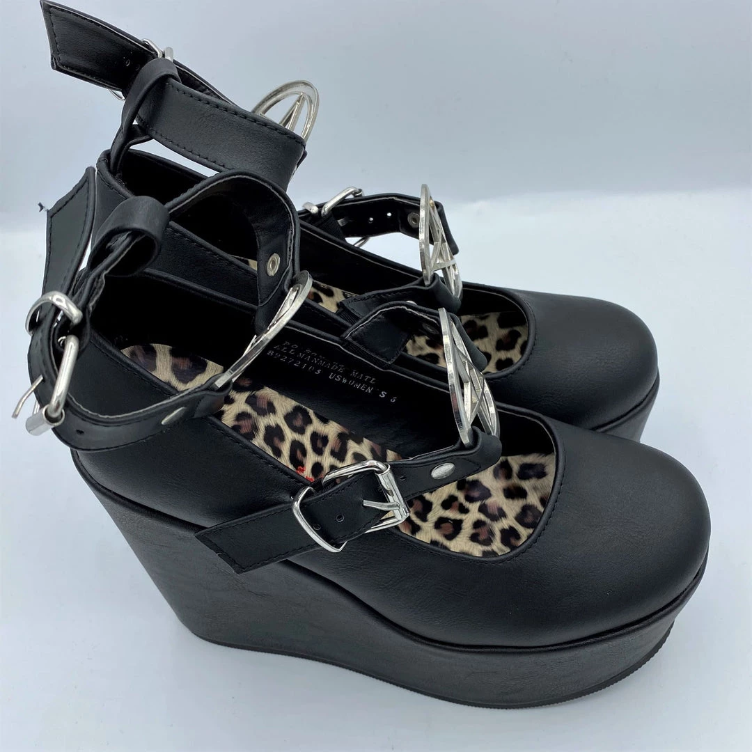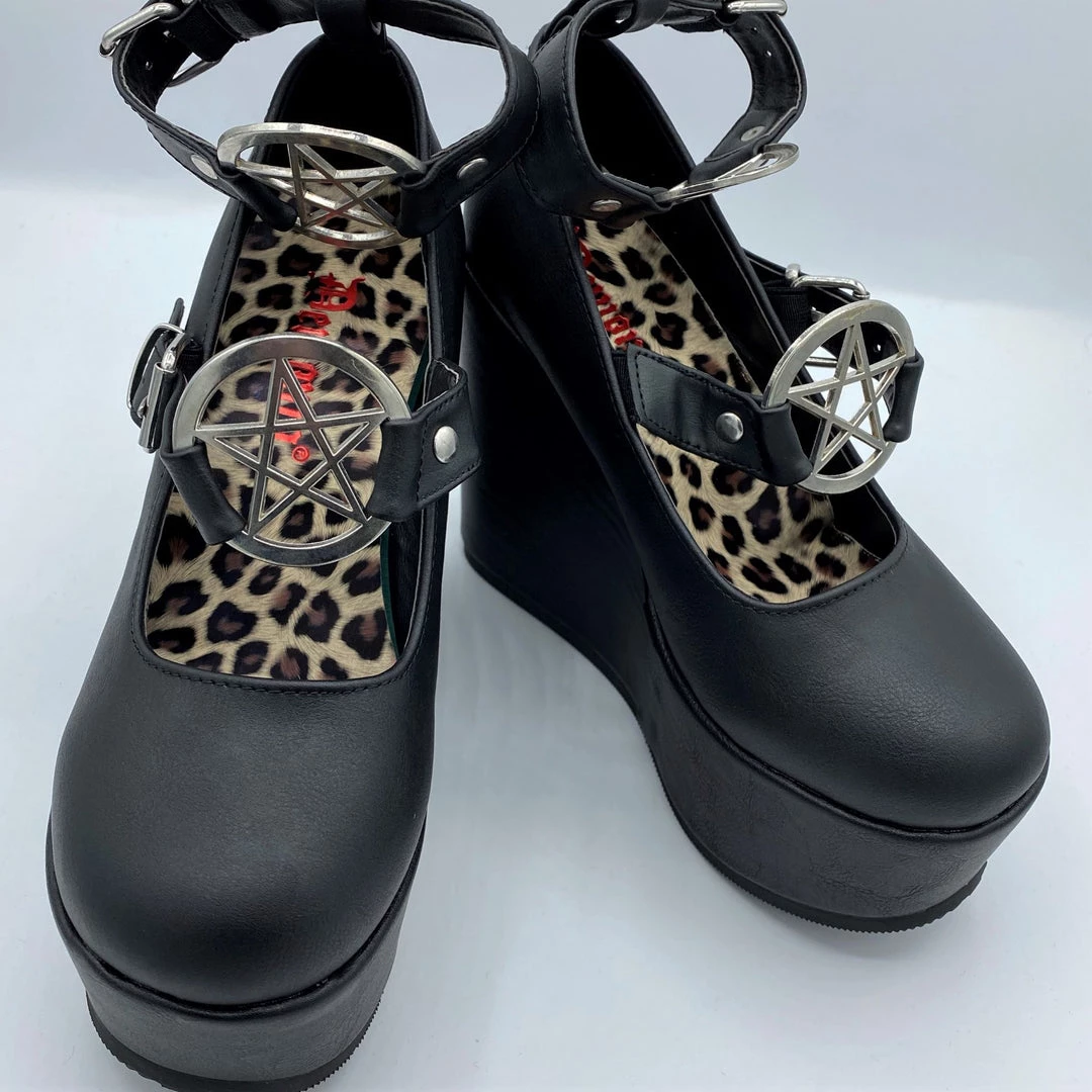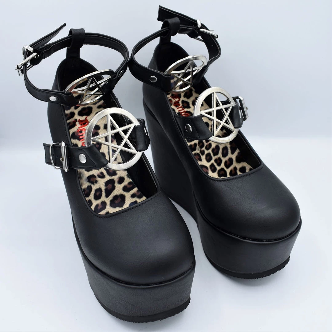 We’re summoning a little extra height in these platform Mary Janes, featuring pentagram detail and a 5 inch heel!