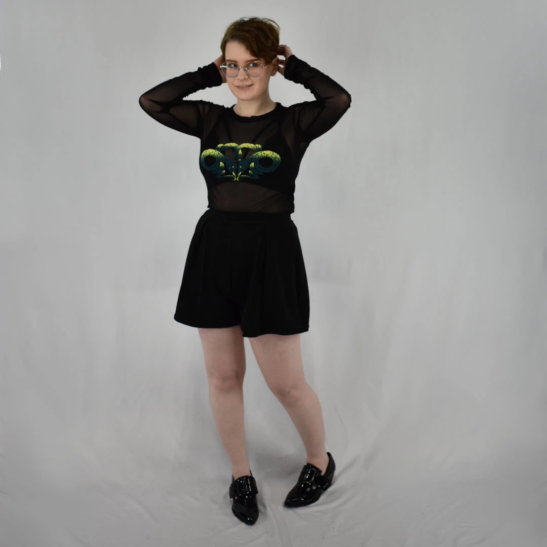 Stretchy textured flowy black shorts, with a black waist band and pockets. Please refer to size chart in photos, waistband made snug to compensate heavy items in pockets. Loosens comfortably after wearing and washing.