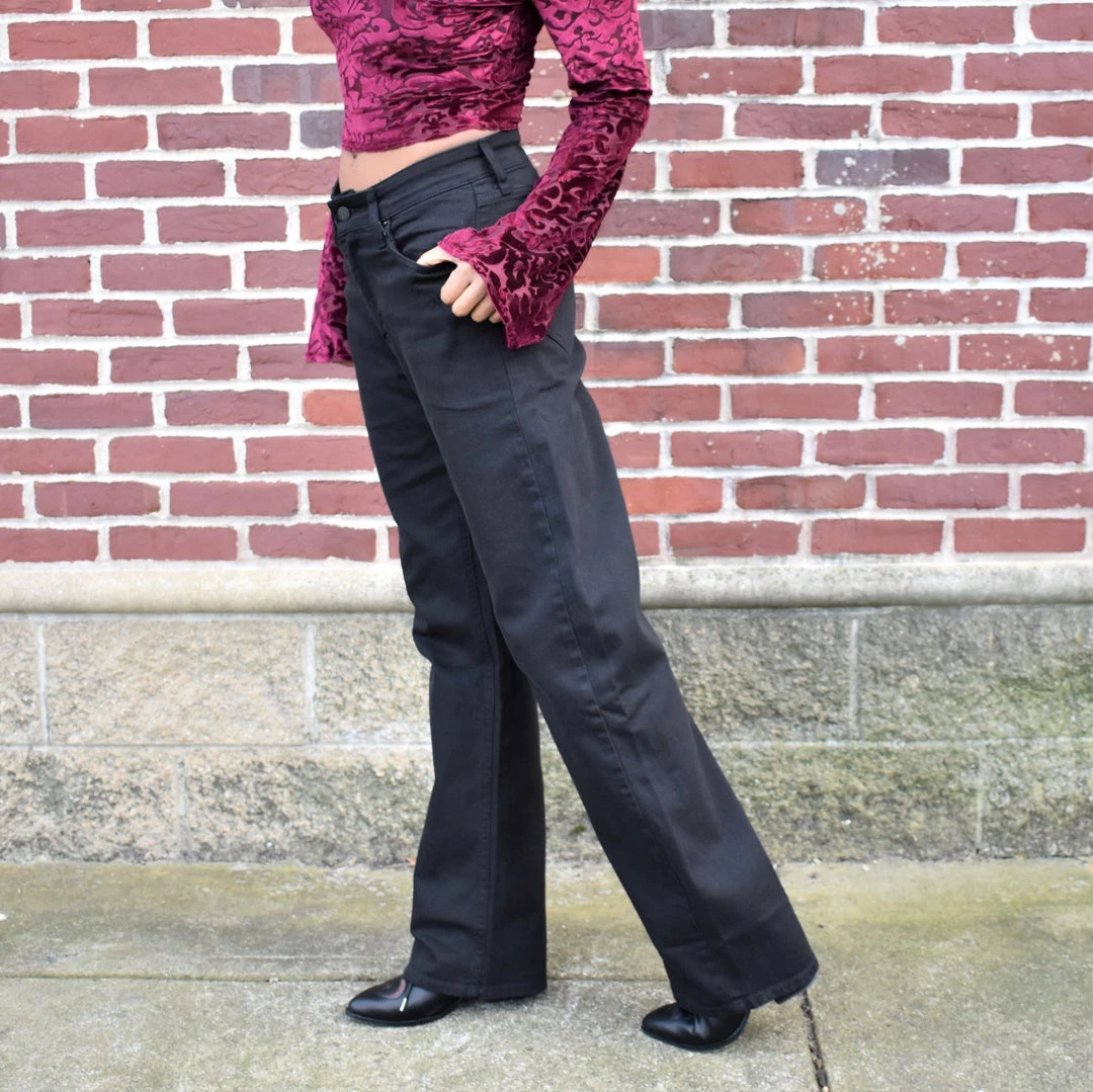 High waisted, 90’s straight leg fit. Slouchy and oversized but regular in the waist.