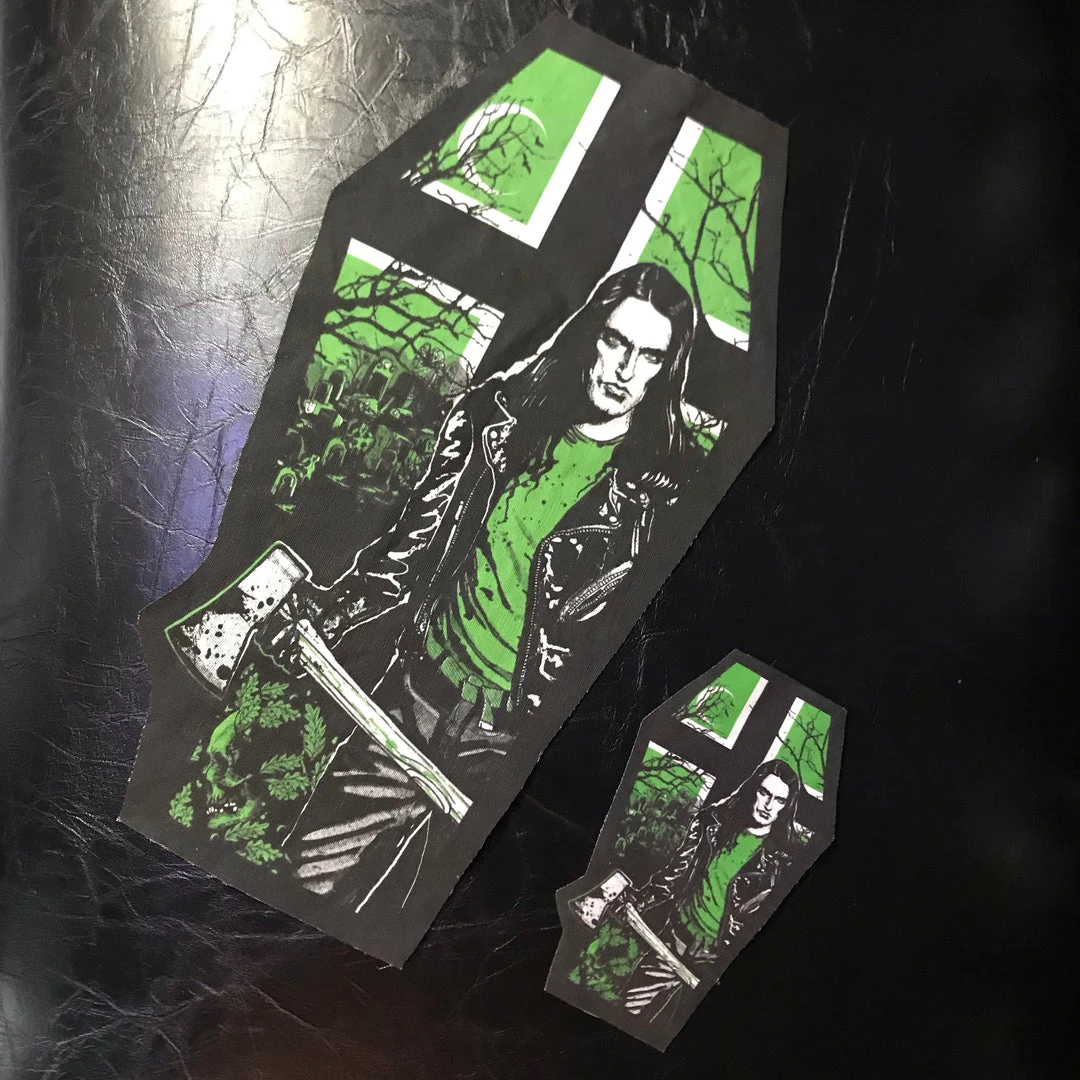 Truly amazing, coffin-shaped Peter Steele patch featuring art by tattoo artist Sara Ray! Approx 7″ tall by 4 ” wide.