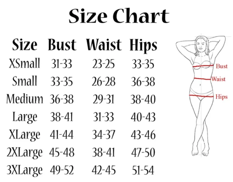 | Size | XS, S, M, L, XL, 2X, 3X |