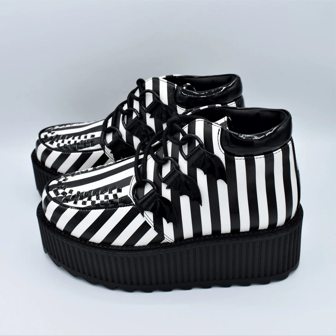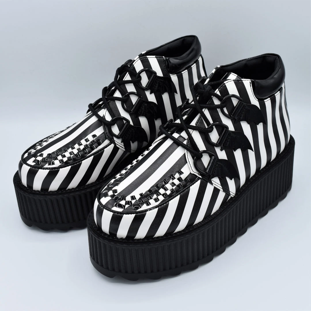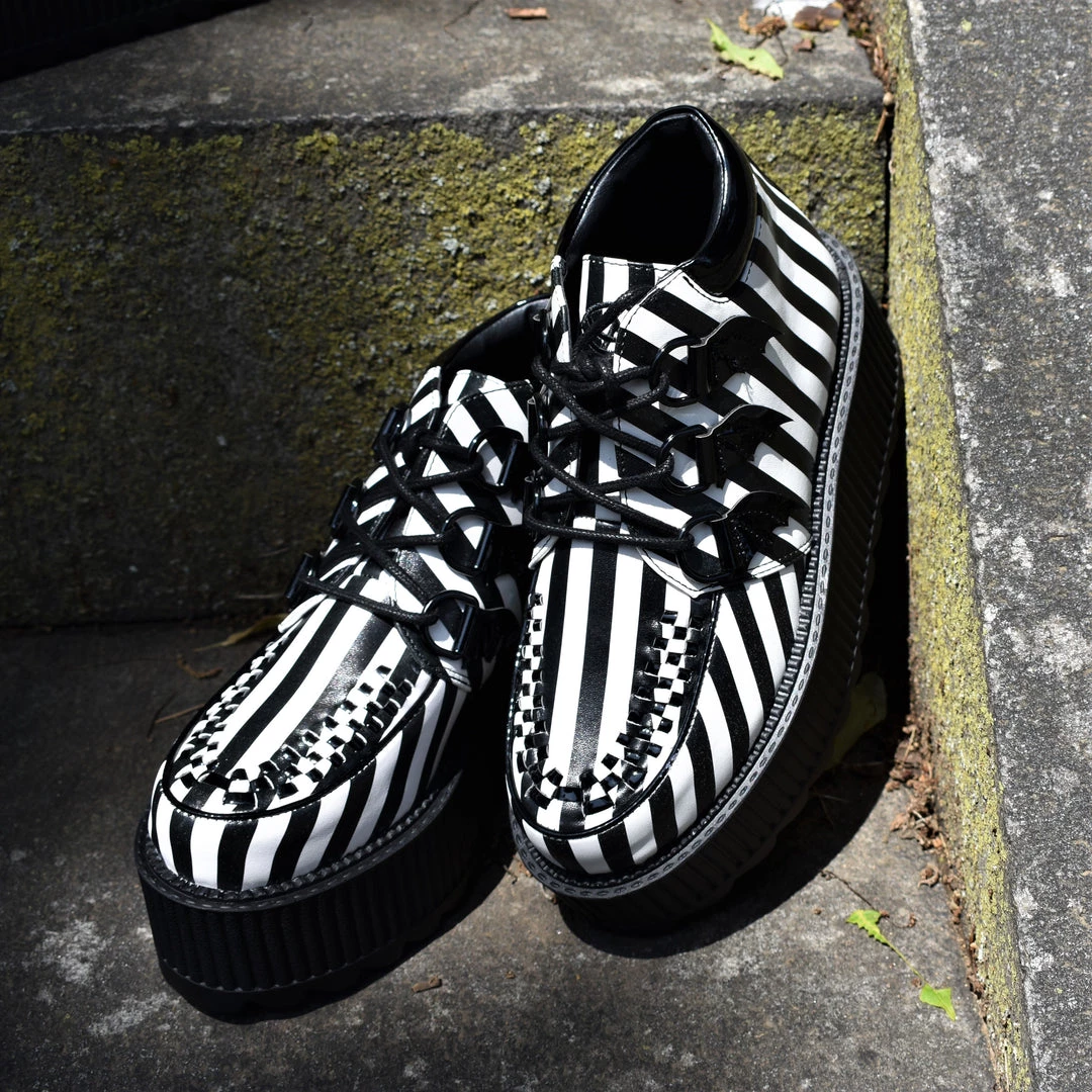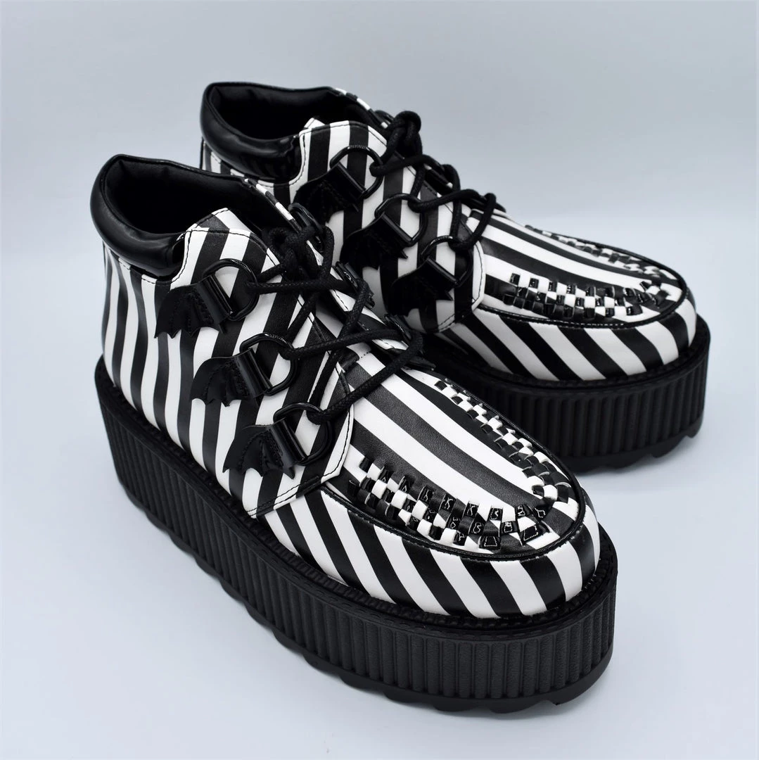 Black and White stripe printed vegan leather upper