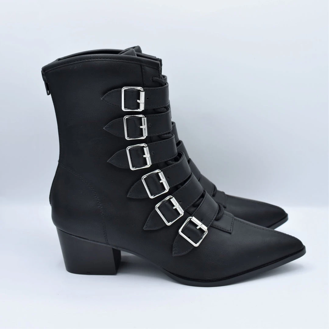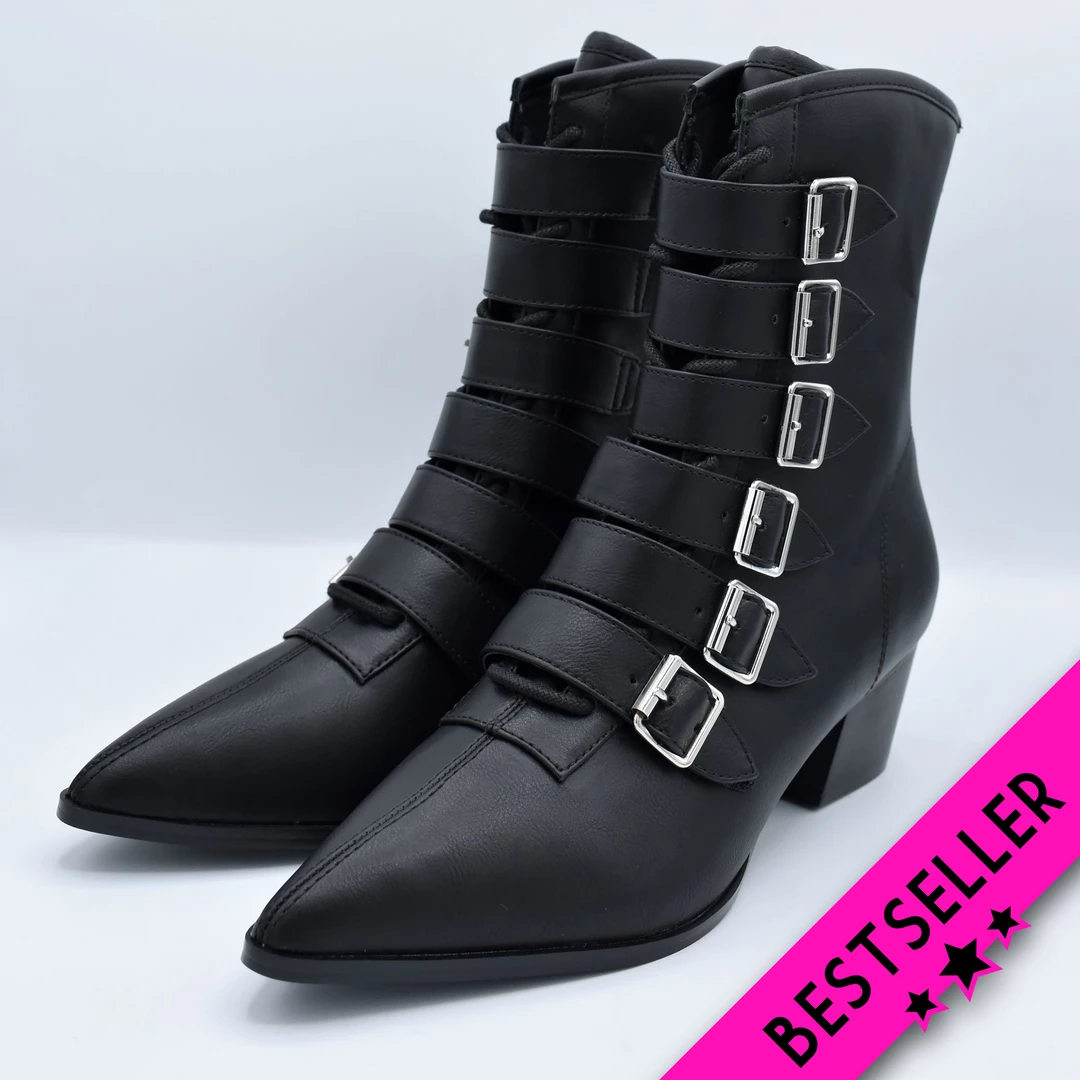 These extra-pointy toed boots are TO DIE for. When someone drops a house on me, I can only hope that I’ll be wearing these gorgeous and ultra-comfy boots from our friends at Strange Cvlt. Also available in patent with black buckles!