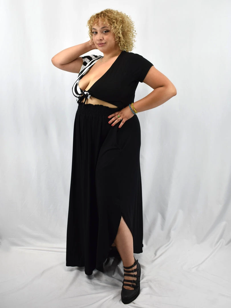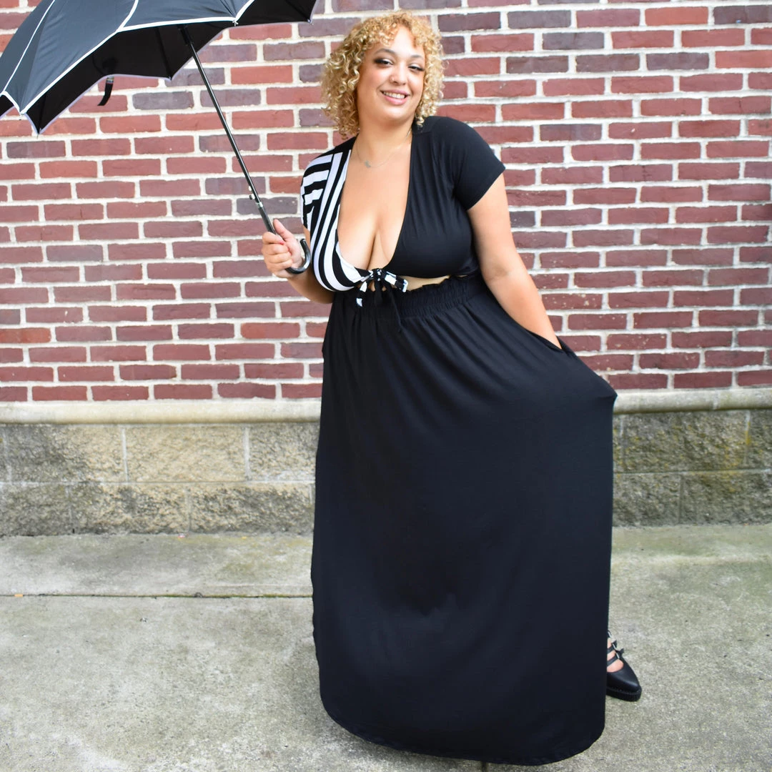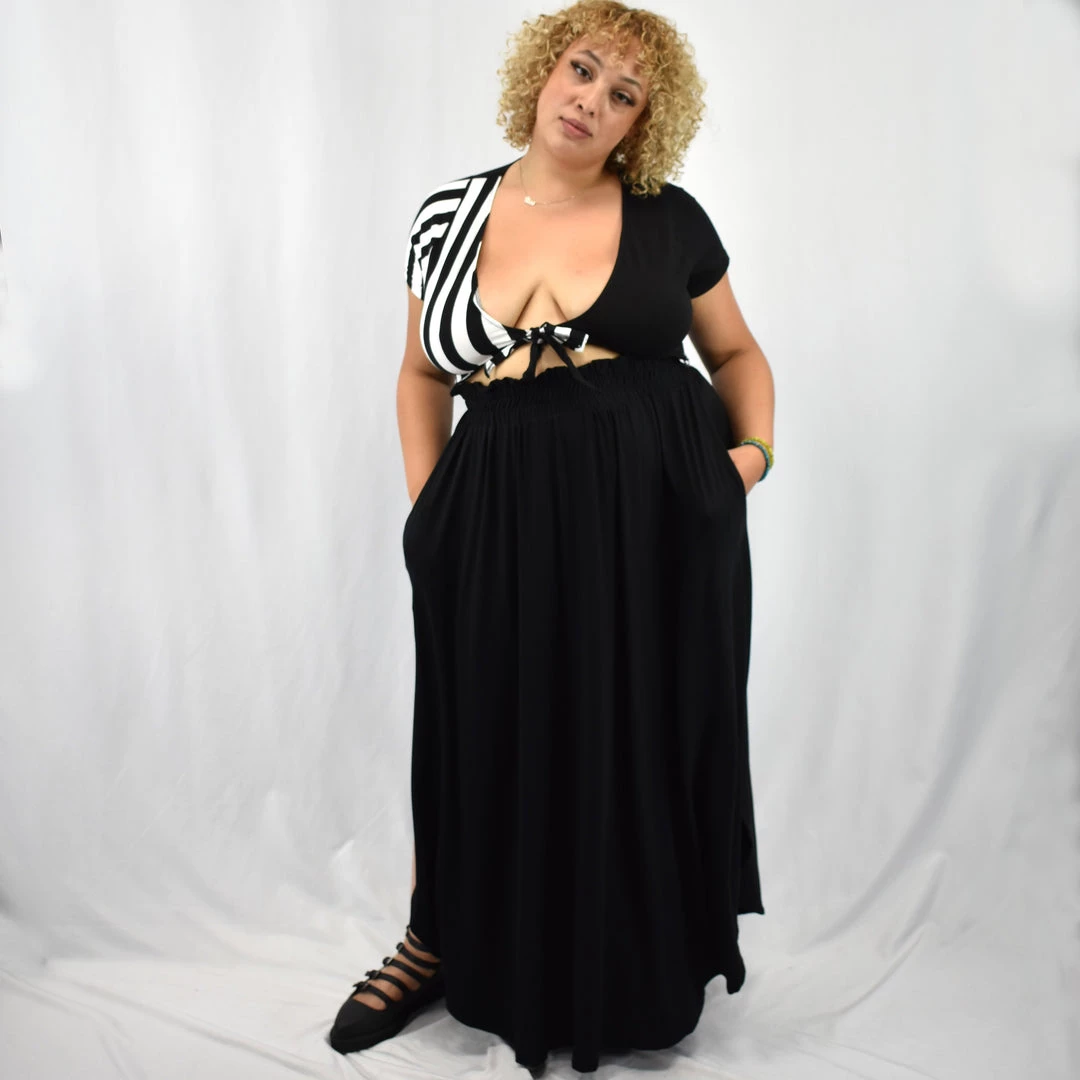 Toss this maxi skirt in your vacation bag or make it a staycation staple. Paperbag elastic waist, POCKETS, and round hem.