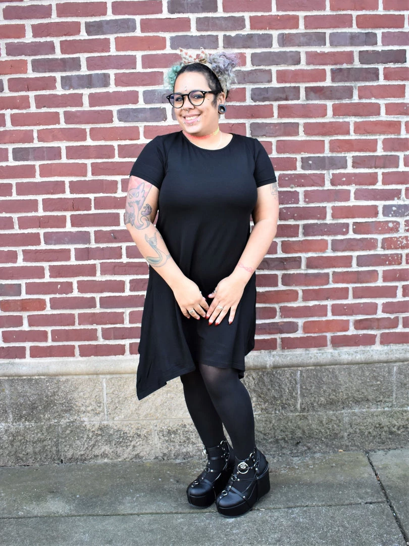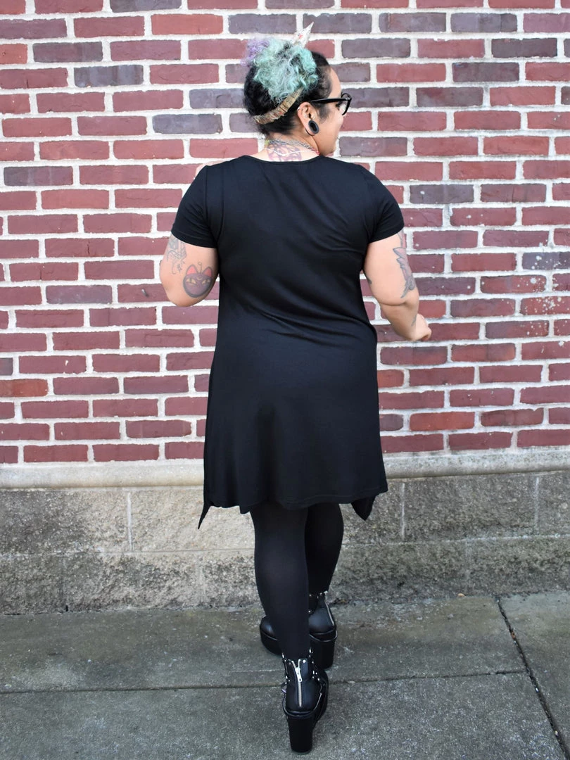 Oversized and long, with kerchief hem. Wear it as a short dress or over leggings or jeans as a long tunic top.