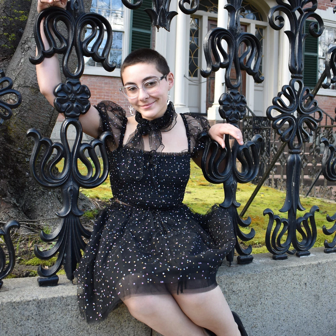 This adorable crop top dances with pastel rainbow colored polka dots throughout the black mesh backdrop. The smocked bodice and cropped silhouette are accented with mesh ruffles, short sleeves, elastic shoulders and cuffs.