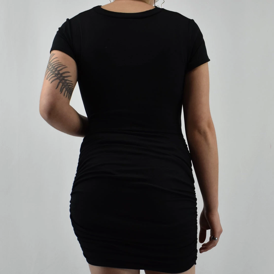 Made out of a soft durable stretch fabric. This dress hugs all your curves in all the right ways.Â