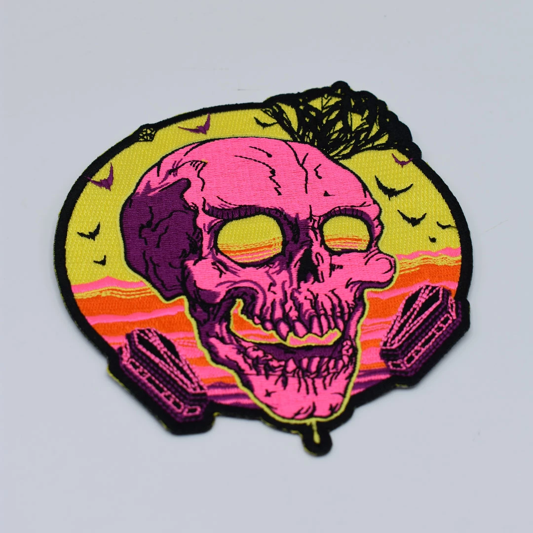 Embroidered patch measures approximately 6″ tall with iron-on backing.