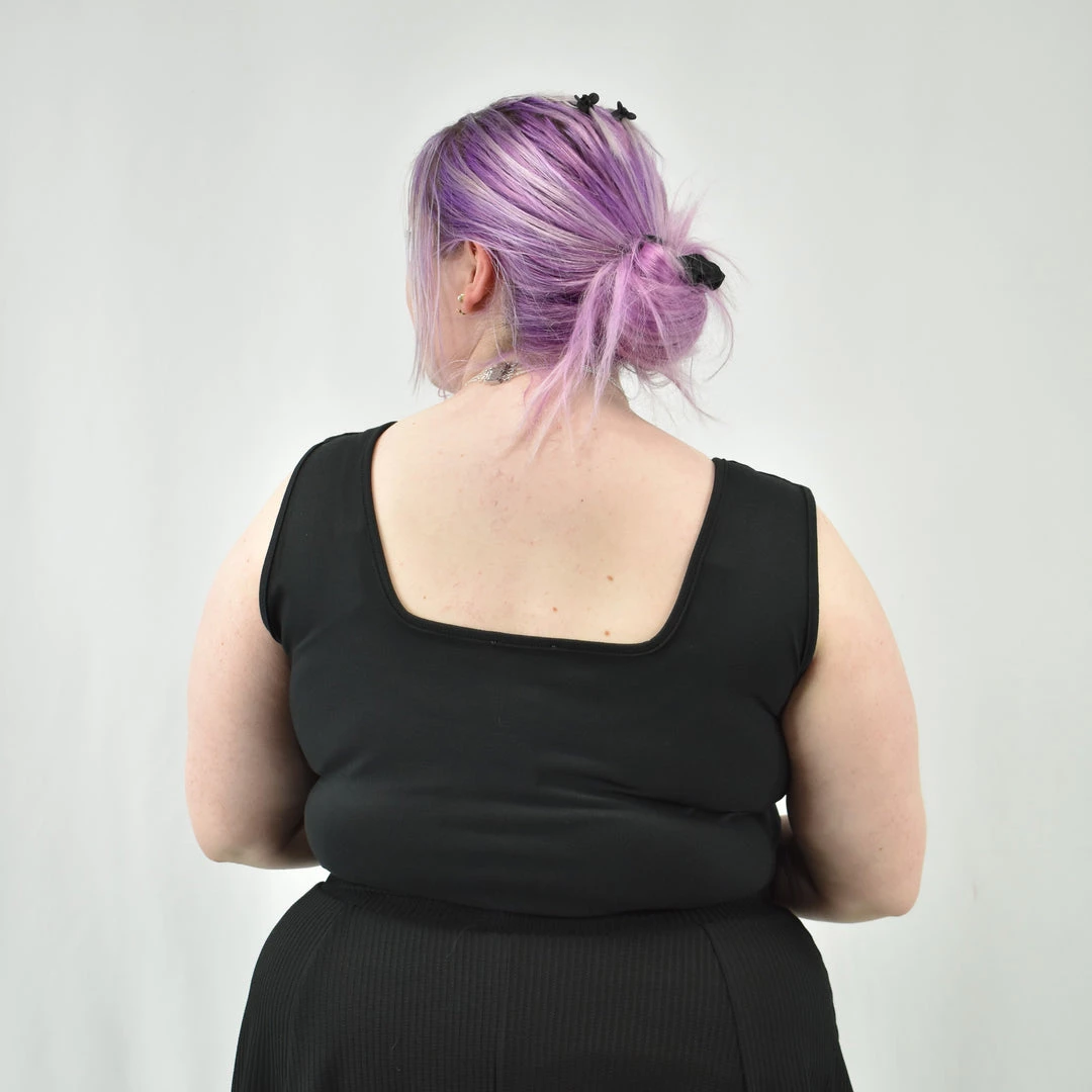 The perfect summer basic! A sleeveless solid knit top with a square neck featuring a true-to-size fit. Fabric is a buttery soft, stretchy knit.