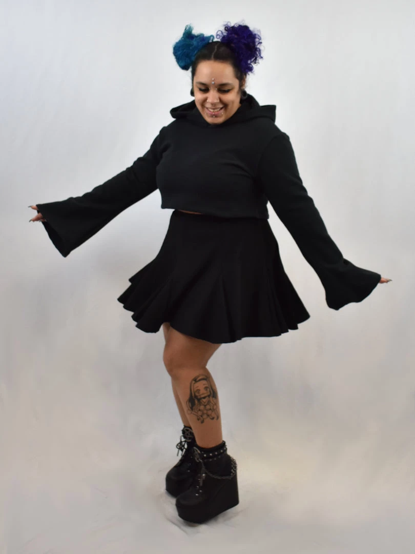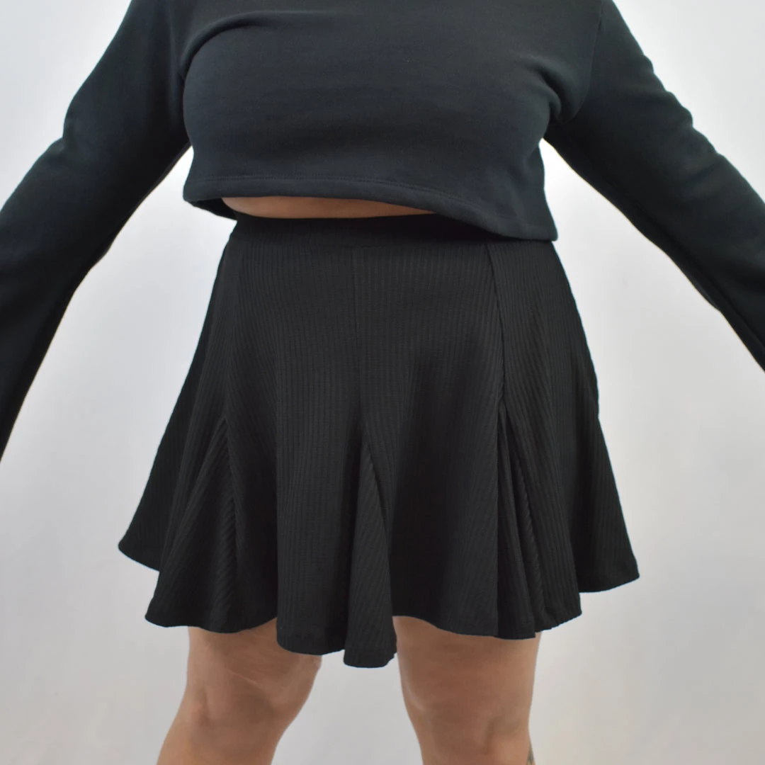 Your new go-to black skort! No need to dig through your dresser searching for bloomers or booty-shorts, this skirt has them built-in so you’ll be ready to rock in 2 minutes flat!Â